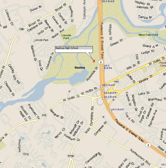 Take Route 3 to exit 5W (first ramp for exit 5). At the end of the ramp