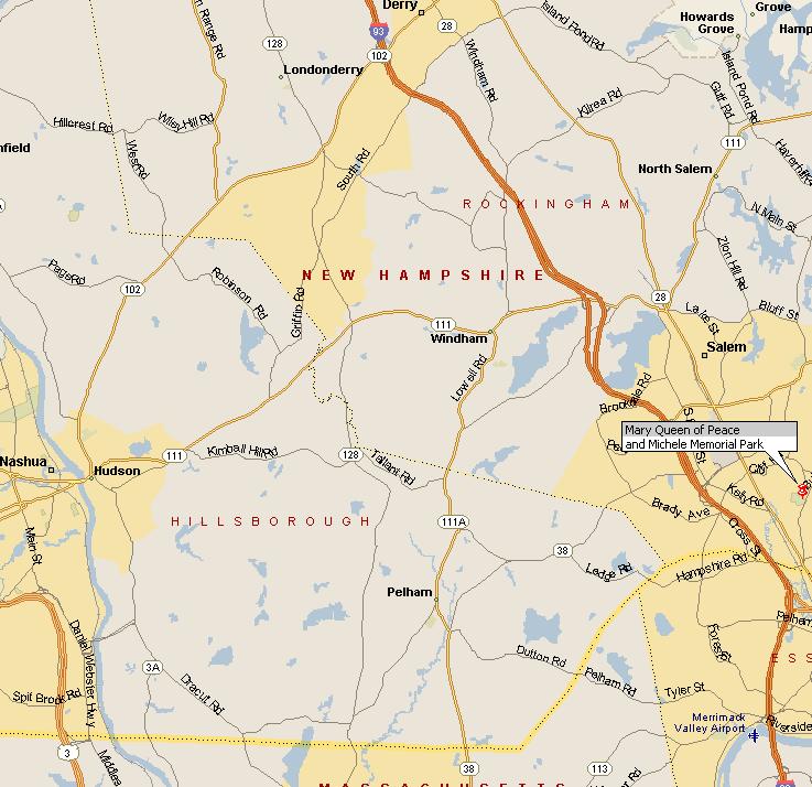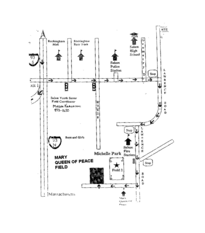 Go to end of Veterans Memorial Parkway and take right onto Lawrence Road. Proceed to a T junction and take a left (still on Lawrence Road). The field is about a mile down on right near Mary Queen of Peace church (MQP). It's also called Michelle Park.
