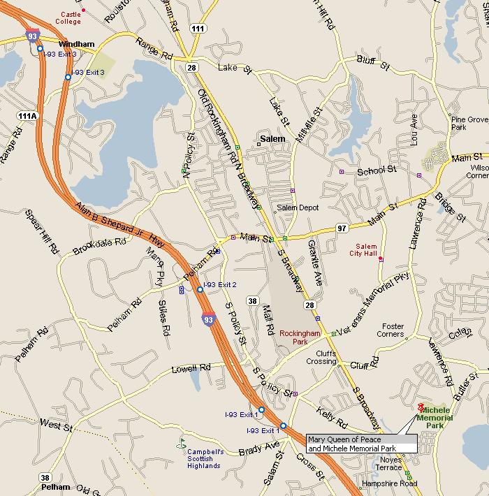 Take Rte 111 to Salem. Go right at junction of Route 28 (at lights with U.S. Gas station). Proceed to Salem center and take a left at the lights with the Exxon station on one corner and 99 restaurant on another (this will be at about the 4th set of lights on 28). This should be Veterans Memorial Parkway with Rockingham Park Boulevard on your left.